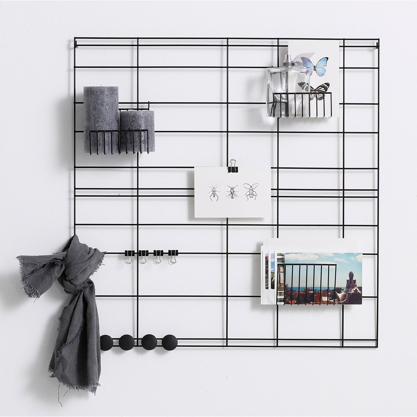 Het WireDesign wandrek van 60x60 cm is super handig om bij u thuis te gebruiken. Hang al uw kaarten, foto's of brieven aan het bord met de magneten of papierklemmen en gebruik de verschillende ophangrekken om uw spullen op te bergen of het wandrek aan te kleden. Op zoek naar een groter wandrek? De wandrekken zijn er ook van 80x60 cm of van 100x60 cm. Een wit wandrek behoort ook tot de mogelijkheden. Al onze wandrekken zijn door de poedercoating binnen en buiten te gebruiken.